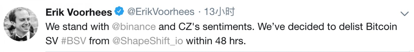 在币安发布下架BSV声明后,加拿大加密货币交易平台ShapeShift首席执行官Erik Voorhees转发赵长鹏推特称,tp官方下载该交易所支持币安和赵长鹏的观点, tp最新版下载决定在48小时内下市比特币SV(BSV)。